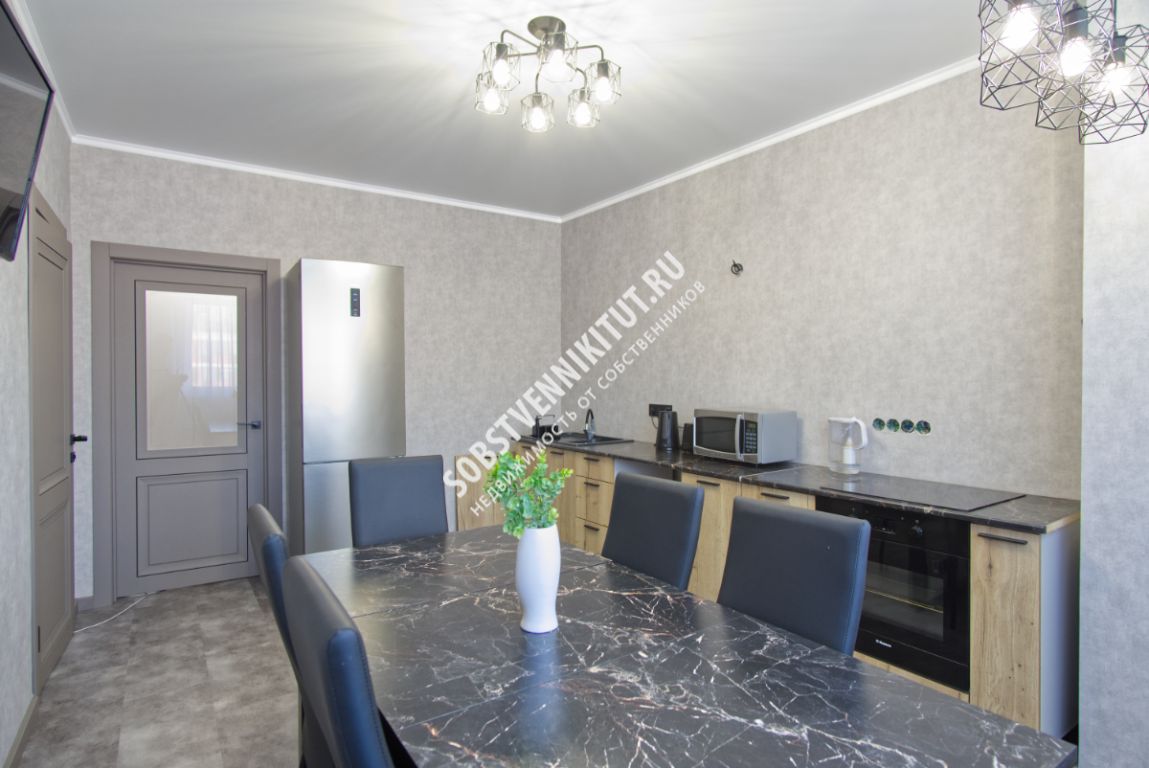 Продаётся современная 3-комнатная квартира Квартира расположена на 13-м этаже 16-этажного монолитно-кирпичного дома 2022 года постройки. Общая площадь - 68,8 м², с учётом балкона - 73,4 м², жилая - 38,3 м². Дом современный, с видеонаблюдением, пассажирским и грузовым лифтами, предусмотрено помещение для хранения колясок. Просторная кухня - 16,1 м², правильной прямоугольной формы, оборудована электрической плитой. Отлично подойдёт для большой обеденной зоны и семейных ужинов. Изолированные комнаты: 13,9 м², квадратная, вход из кухни, с выходом на застеклённый, утеплённый и благоустроенный балкон 4,6 м²; 12,9 м², квадратной формы; 11,3 м², квадратной формы. Прихожая - 8,2 м², позволяет удобно организовать системы хранения. Санузел раздельный: ванная - 3,6 м², туалет - 2,6 м². На полу и стенах керамогранит, потолки натяжные, установлен тёплый пол в ванной и туалете. Во всей квартире выполнен свежий современный ремонт 2023 года: обои Soft Touch (Бельгия), пол - кварцвинил, потолки - натяжные. Все коммуникации центральные, дополнительно установлен бойлер. Проложены трассы под 4 сплит-системы. Часть мебели и техники остаётся: двуспальная кровать, односпальная кровать, компьютерный стол, холодильник. Придомовая территория благоустроена: детские и спортивные площадки, озеленение, качественная ливнёвая канализация. Инфраструктура рядом: школа №106 и детский сад - в радиусе менее 300 м, лаборатория Invitro, банкомат Т-банка, магазины, гастробар, барбершоп - рядом, ТЦ «Авиатор» — поблизости, остановка маршрутного такси №20 - в шаговой доступности. Квартира новая, просторная, с качественным ремонтом - отличный вариант для комфортной жизни в перспективном районе Краснодара. Заходите и живите без дополнительных вложений.